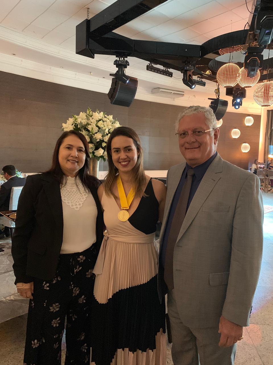 Na manhã desta quinta-feira (13), durante a programação da 483ª Reunião Plenária do Conselho Federal de Farmácia (CFF) aconteceu a cerimônia de outorga da Comenda do Mérito Farmacêutico, que premia os profissionais que se destacaram na realização de serviços relevantes à profissão e as comunidades em que atuam. A farmacêutica Manuella Pereira Cavalcante de Melo Queiroz foi a homenageada pelo estado de Alagoas, a presidente Mônica Meira e o conselheiro federal por Alagoas, José Gildo da Silva, estiveram presentes na solenidade.