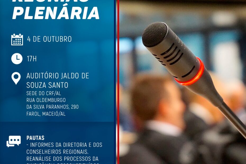A Diretoria do Conselho Regional de Farmácia de Alagoas convoca todos os profissionais farmacêuticos e estudantes de farmácia para participarem da reunião plenária que acontece…