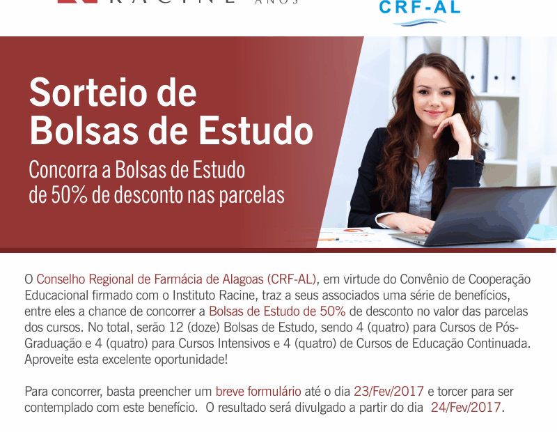 Atenção farmacêuticos! O Instituto Racine prorrogou o prazo de inscrição para sorteio de bolsas com descontos de 50% para os farmacêuticos que estiverem interessados em se…
