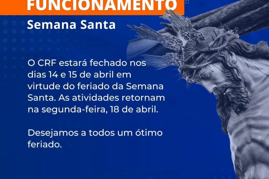 O Conselho Regional de Farmácia de Alagoas informa que em virtude do feriado da semana santa, nos dias 14 e 15 de abril estará fechado.…