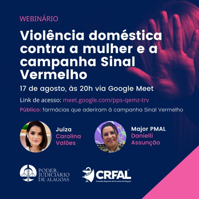 TJ/AL promoverá webinário sobre violência doméstica para farmacêuticos