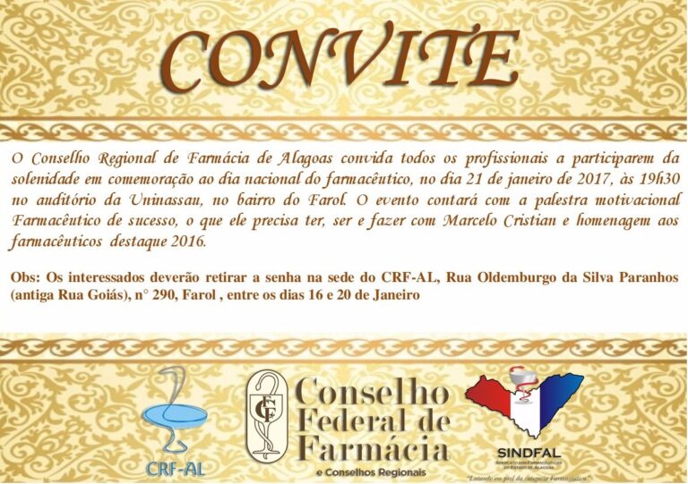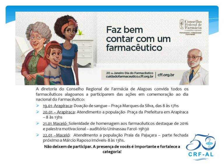 Diretoria do CRF/AL convida todos os profissionais a participarem das ações do dia do farmacêutico 15 de fevereiro de 2017