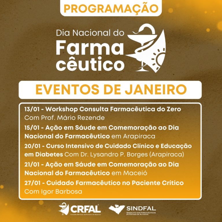 Dia Nacional do Farmacêutico: CRF/AL promove ações de saúde em Maceió e Arapiraca 3 de janeiro de 2024