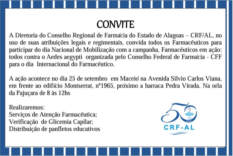 CONVITE: COMEMORAÇÃO AO DIA INTERNACIONAL DO FARMACÊUTICO
