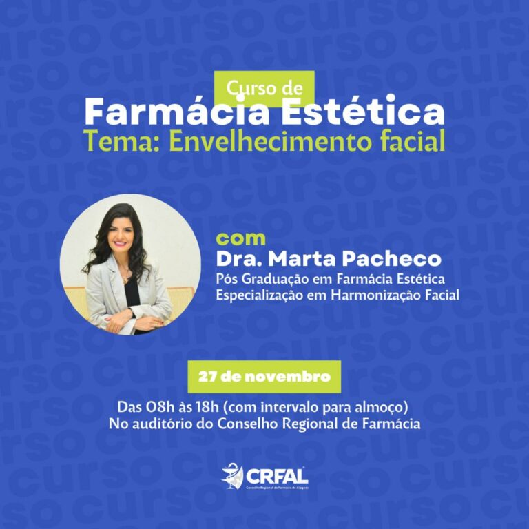 CRF/AL promove curso em farmácia estética no sábado, 27