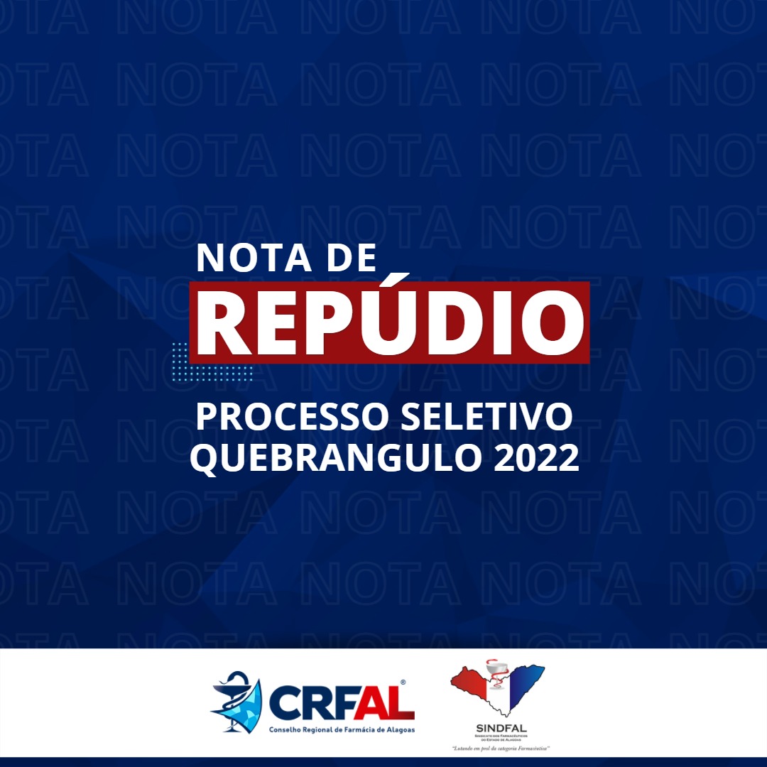 O Sindicato dos Farmacêuticos do Estado de Alagoas e o Conselho Regional de Farmácia vem a público externar o seu repúdio ao Processo Seletivo 002/2022 publicado pela Prefeitura Municipal de Quebrangulo cujo salário oferecido ao profissional farmacêutico é de R$1.500,00 para uma carga horária de 44h semanais.